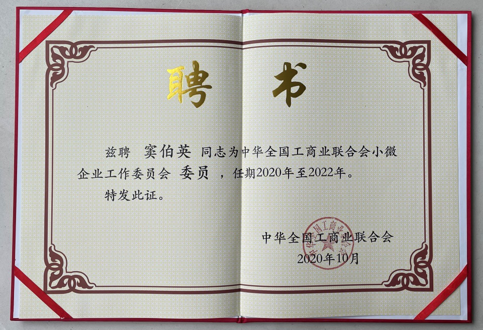 為進一步落實新時代民營經(jīng)濟統(tǒng)戰(zhàn)工作的要求,有效擴大統(tǒng)戰(zhàn)工作覆蓋面,加強與小微企業(yè)的聯(lián)系,積極打通小微企業(yè)參政議政的通道,推動改善小微企業(yè)發(fā)展環(huán)境,經(jīng)中華全國工商業(yè)聯(lián)合會(簡稱:全國工商聯(lián))2020年第10次主席辦公會議研究,成立全國工商聯(lián)小微企業(yè)工作委員會,并聘請洛陽泰斯特探傷技術(shù)有限公司(簡稱:泰斯特公司)CEO竇伯英女士出任中華全國工商業(yè)聯(lián)合會小微企業(yè)工作委員會委員。