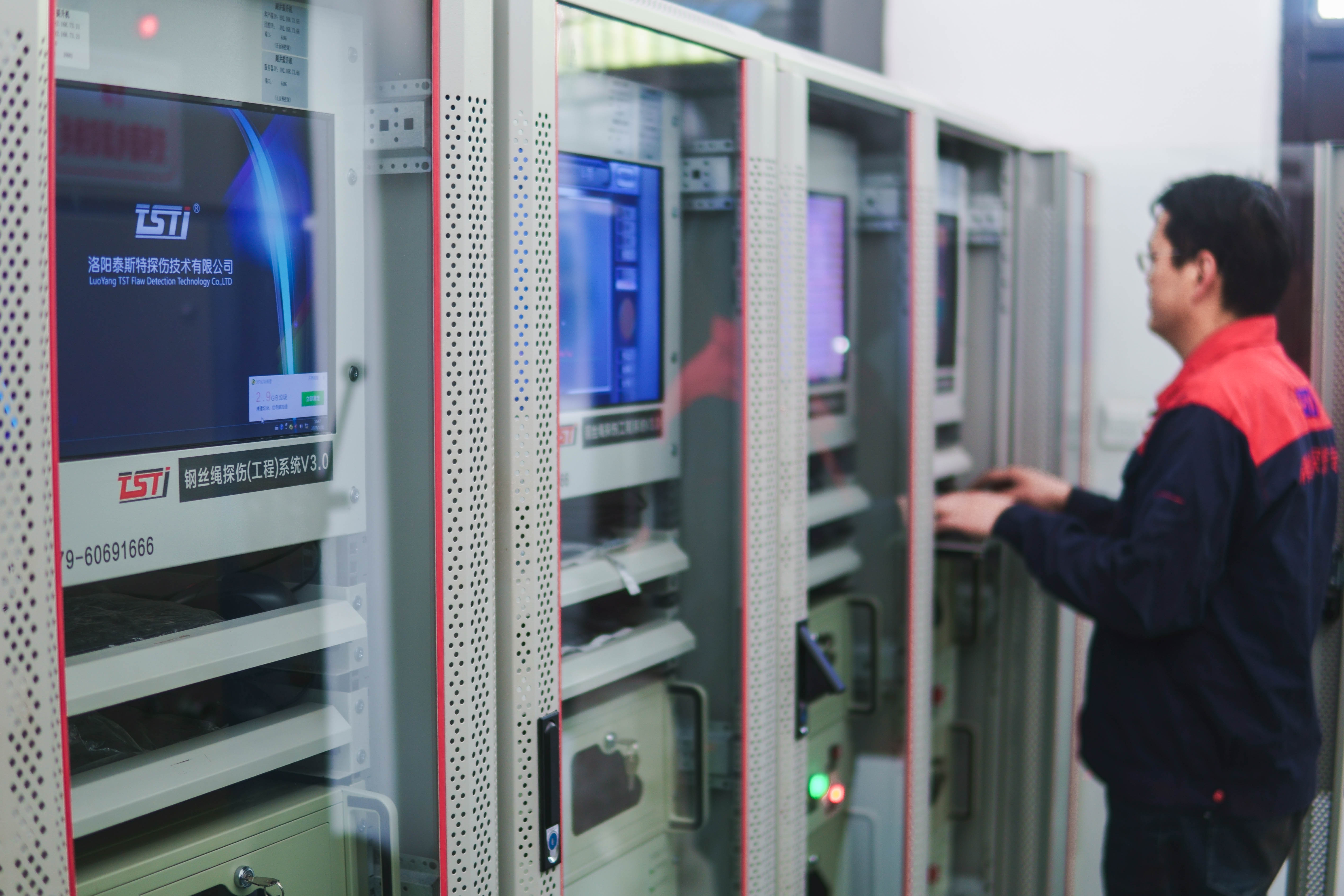 洛陽泰斯特探傷技術(shù)有限公司憑借“全磁檢測”核心技術(shù),也將積極響應(yīng)國家礦山安監(jiān)局工作的開展,我們所研制的智能型探傷工程自動化裝置可適用于智慧礦山中的單繩纏繞式提升機、四/六繩井塔式提升機、四/六繩斜井式提升機、乘人架空裝置等不同系統(tǒng)中,可以對鋼絲繩內(nèi)外部的斷絲、磨損、銹蝕等各種隱蔽性損傷進行24小時不間斷的監(jiān)測及實時預(yù)警,并給出探測數(shù)據(jù)和損傷數(shù)值,并且能夠做出安全狀況評價,工作人員可根據(jù)所探測出的結(jié)果來判斷是否需要更換鋼絲繩。