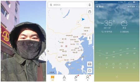 目的地居然是個(gè)連站臺(tái)都沒有的火車站,對(duì)得起“中冷”這四個(gè)字。下了火車瞬間感覺整個(gè)空氣都凍結(jié)了,吸口氣鼻子僵了,眨個(gè)眼睫毛凍了,喝口水成吃碎冰了。手機(jī)定格在“-35℃/-19℃”,天然大冰箱,我來了!