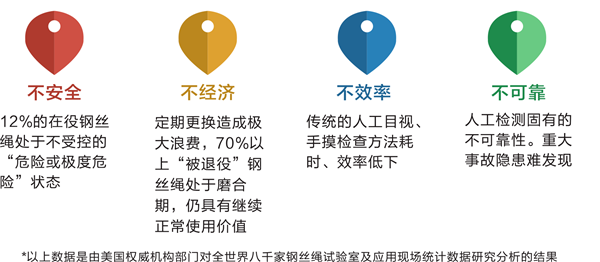 鋼絲繩在使用過程中不可避免的會(huì)產(chǎn)生系列各類損傷威脅它的安和壽命,那么對(duì)它的安監(jiān)控就不得不引起每位安管理者和參與者的重視,然而由于種種原因當(dāng)前鋼絲繩安管控問題不容樂觀,主要體現(xiàn)在下幾個(gè)方面: