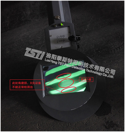 由于該礦對輸送帶鋼繩芯檢測設備的概念和認識局限于他們之前采購使用但直不滿意的X光手持檢測設備(客戶反映X光設備僅僅只能檢測斷絲,而且設備笨重檢測率低下且對使用人員有危害,維護人員為排斥)。TST磁技術的輸送帶鋼繩芯在線自動監(jiān)測系統(tǒng)對該礦維護人員來說既新奇又疑慮。為了讓該礦客戶對TST設備的性能有個直觀震撼的認識,我公司主動要求在現(xiàn)場與X光檢測設備驗傷比試。
